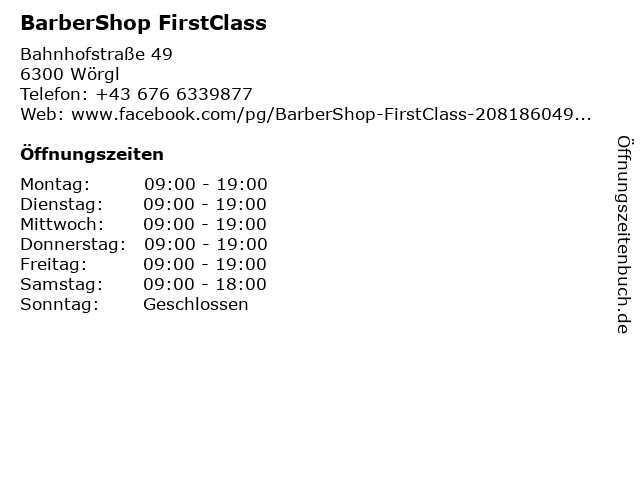 | Öffnungszeiten BarberShop FirstClass in Wörgl anzeigen | |