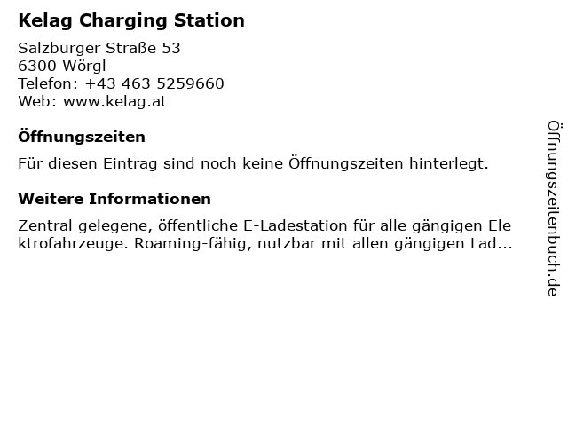 Öffnungszeiten Kelag Charging Station in Wörgl anzeigen