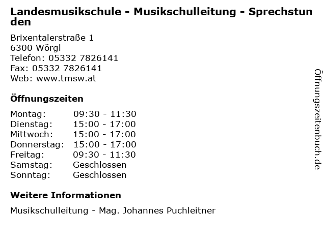 Branchen & Suchbegriffe zu Landesmusikschule - Musikschulleitung - Sprechstunden:johannes, landesmusikschule, mag., musik, musikschule, musikschulleitung, puchleitner, schule, sprechstunden |