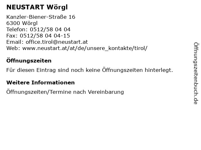 | Öffnungszeiten NEUSTART Wörgl in Wörgl anzeigen | |