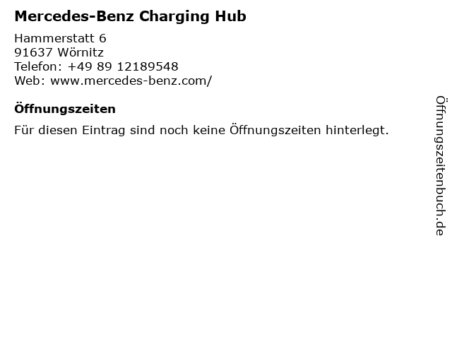 | Öffnungszeiten Mercedes-Benz Charging Hub in Wörnitz anzeigen | |