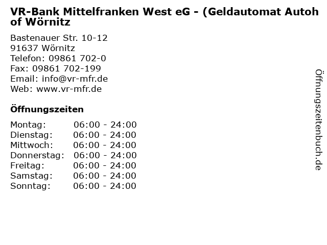 Branchen & Suchbegriffe zu VR-Bank Mittelfranken West eG - (Geldautomat Autohof Wörnitz:abheben, autohof, bank, bargeld, eg, finanzen, geldautomat, girokonto, kontoauszugsdrucker, mittelfranken, raiffeisenbanken, vermögen, volksbanken, vorsorge, vr, west, wörnitz |