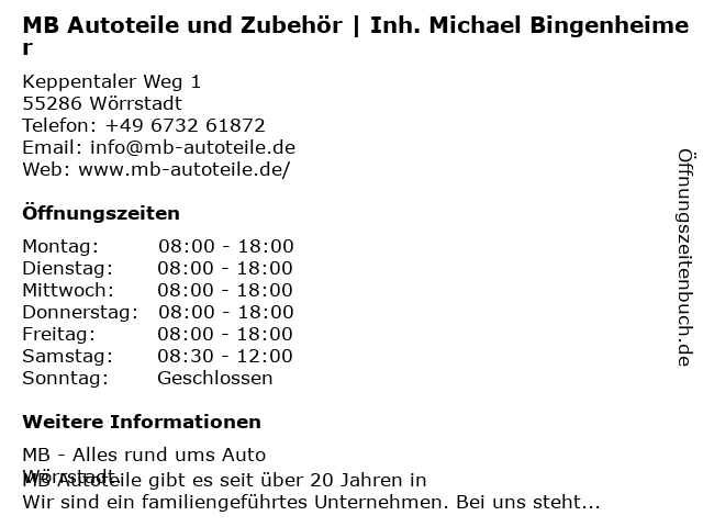 6 Autoteile Bechtoldt GmbH (Nov. - Febr.) (Entfernung: 17,48 km) Bosenheimer Str. 255, 55543 Bad Kreuznach |