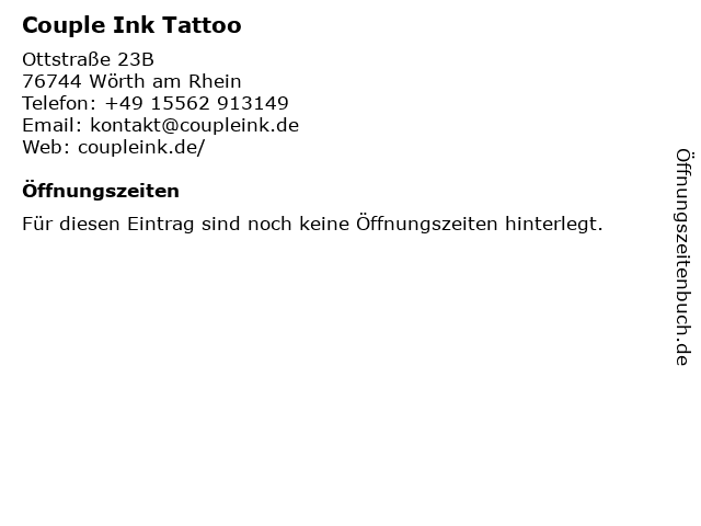 | Öffnungszeiten Couple Ink Tattoo in Wörth am Rhein anzeigen | |