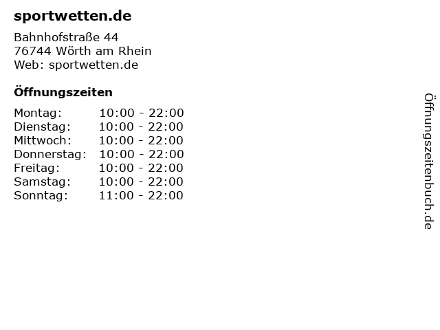 | Öffnungszeiten sportwetten.de in Wörth am Rhein anzeigen | |
