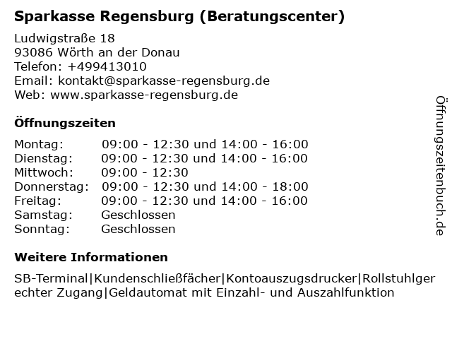 3 Sparkasse Regensburg (Beratungscenter) (Entfernung: 14,94 km) Aussiger Straße 18b, 93073 Neutraubling 6 Sparkasse Regensburg (Beratungscenter) (Entfernung: 17,72 km) Regensburger Straße 1a, 93083 Obertraubling |