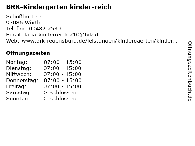 | Öffnungszeiten BRK-Kindergarten kinder-reich in Wörth anzeigen | |