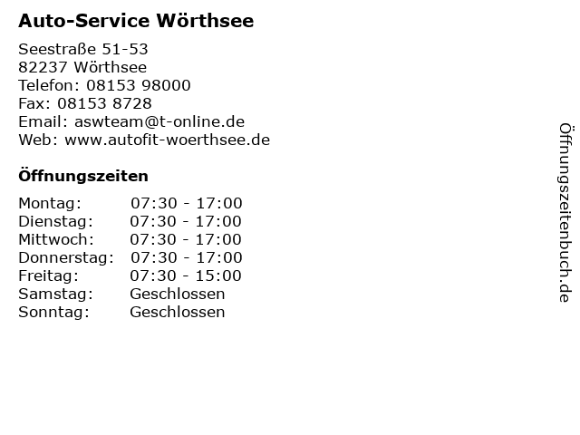 | Öffnungszeiten Auto-Service Wörthsee in Wörthsee anzeigen | |