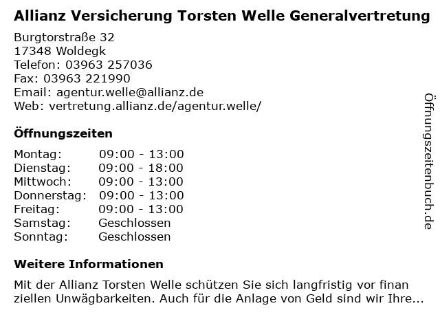 3 Allianz Versicherung Thomas Rekittke Generalvertretung (Entfernung: 11,52 km) Markt 22, 17335 Strasburg (Uckermark) 4 Allianz Versicherung Jan Ruhbach Generalvertretung (Entfernung: 11,54 km) Markt 22, 17335 Strasburg (Uckermark) 5 Hochbauunternehmen Torsten Hempel GmbH (Entfernung: 16,18 km) An der Straßenmeisterei 2, 24601 Stolpe 6 |