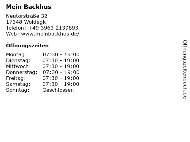 | Öffnungszeiten Mein Backhus in Woldegk anzeigen | |