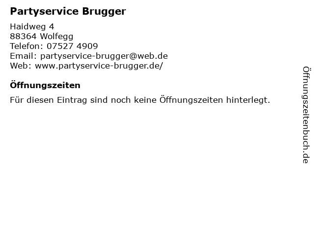 | Öffnungszeiten Partyservice Brugger in Wolfegg anzeigen | |