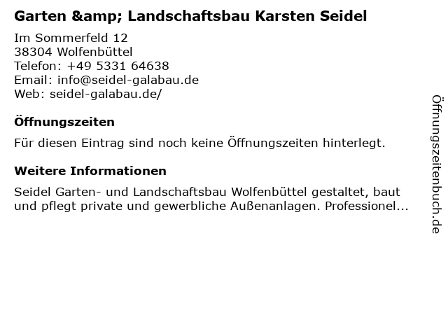 | Garten & Landschaftsbau Karsten Seidel anrufen | |