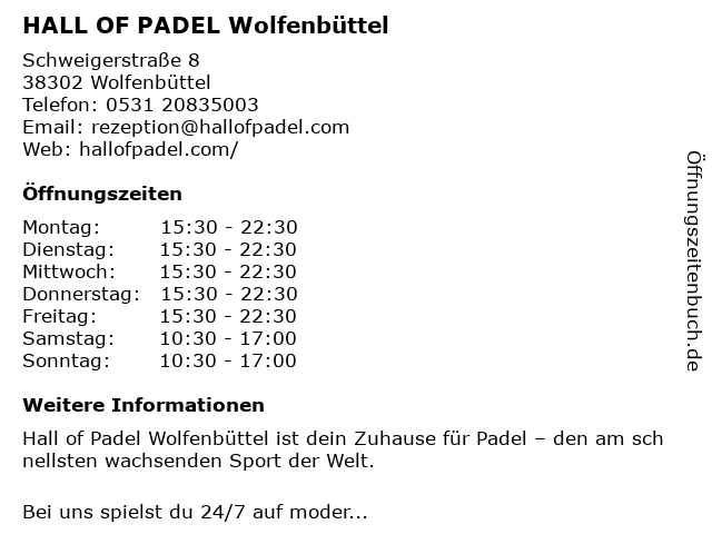 Branchen & Suchbegriffe zu HALL OF PADEL Wolfenbüttel:hall, of, padel |