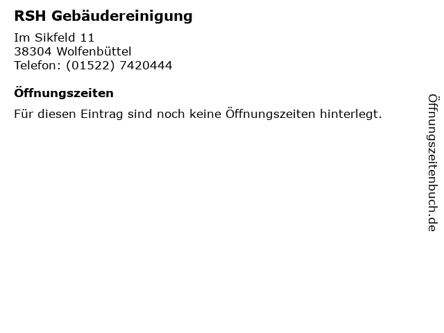 | Öffnungszeiten RSH Gebäudereinigung in Wolfenbüttel anzeigen | |