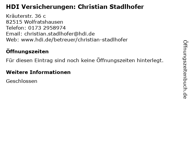 | HDI Versicherungen: Christian Stadlhofer anrufen | |