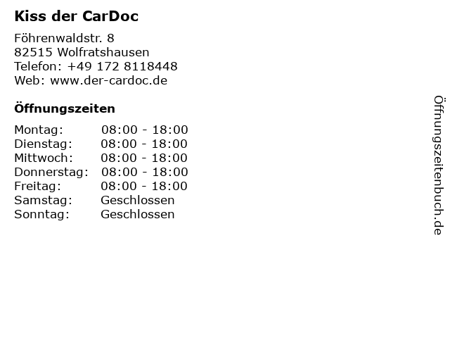 | Öffnungszeiten Kiss der CarDoc in Wolfratshausen anzeigen | |