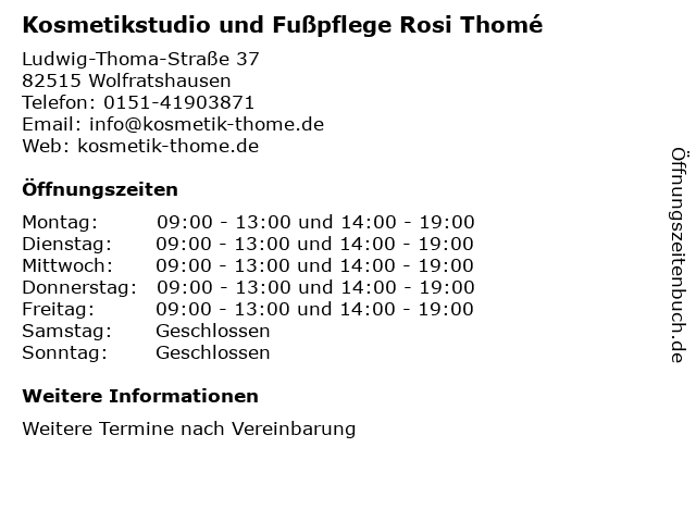 | Donnerstag | 09:00-13:00 und 14:00-19:00 |