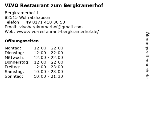 Branchen & Suchbegriffe zu VIVO Restaurant zum Bergkramerhof:bergkramerhof, italienisch, lokal, pasta, restaurant, vivo, zum |