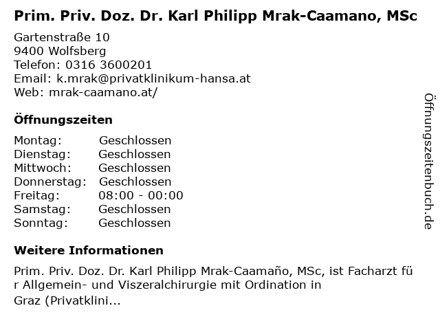 Branchen & Suchbegriffe zu Prim. Priv. Doz. Dr. Karl Philipp Mrak-Caamano, MSc:caamano, doz., dr., karl, mrak, msc, philipp, prim., priv. |