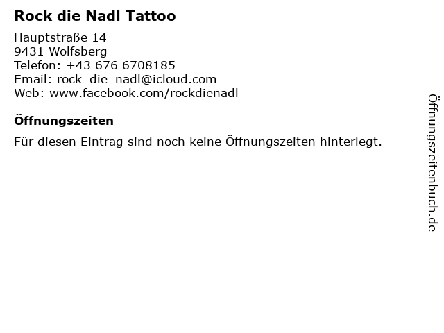 | Öffnungszeiten Rock die Nadl Tattoo in Wolfsberg anzeigen | |
