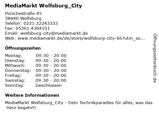 Öffnungszeiten MediaMarkt Wolfsburg_City in Wolfsburg anzeigen | |