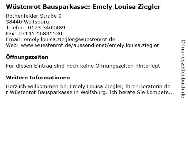| Wüstenrot Bausparkasse: Emely Louisa Ziegler anrufen | |