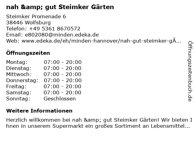 Öffnungszeiten nah & gut Steimker Gärten in Wolfsburg anzeigen | |