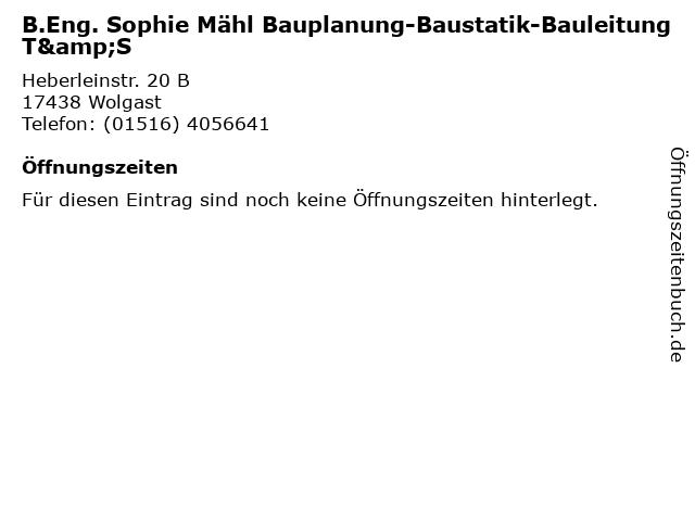 | B.Eng. Sophie Mähl Bauplanung-Baustatik-Bauleitung T&S anrufen | |