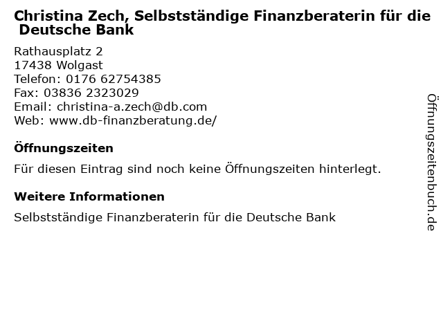 | Christina Zech, Selbstständige Finanzberaterin für die Deutsche Bank anrufen | |