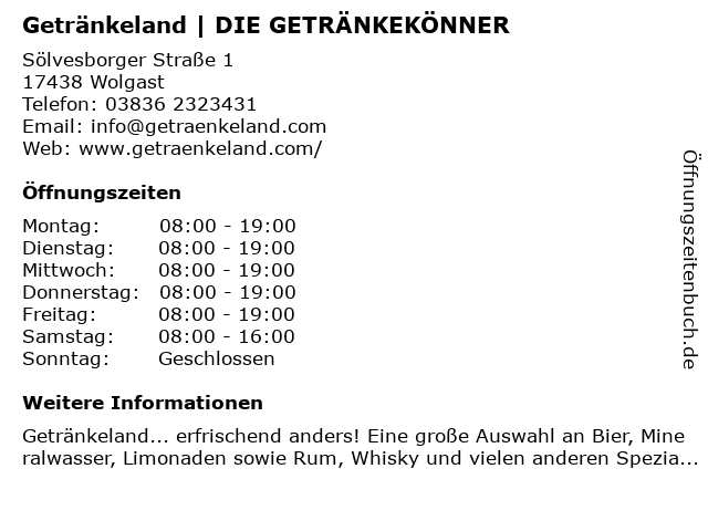 5 Getränkeland Heidebrecht GmbH & Co. KG (Entfernung: 13,44 km) Alte Peenemünder Str. 1, 17449 Karlshagen 6 |