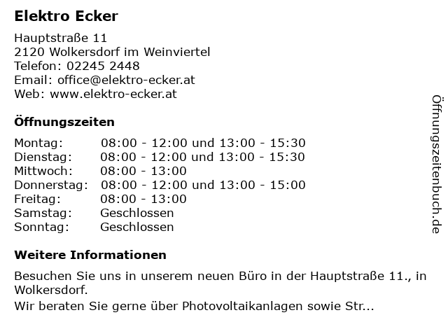 1 Ing. Josef Ecker Gesellschaft m.b.H. (Entfernung: 0,05 km) Hauptstraße 11, 2120 Wolkersdorf Im Weinviertel 3 Ecker-Pfleger Steuerberatung & Unternehmensberatung (Entfernung: 19,45 km) Dresdnerstraße 87/A21, 1200 Wien 6 |