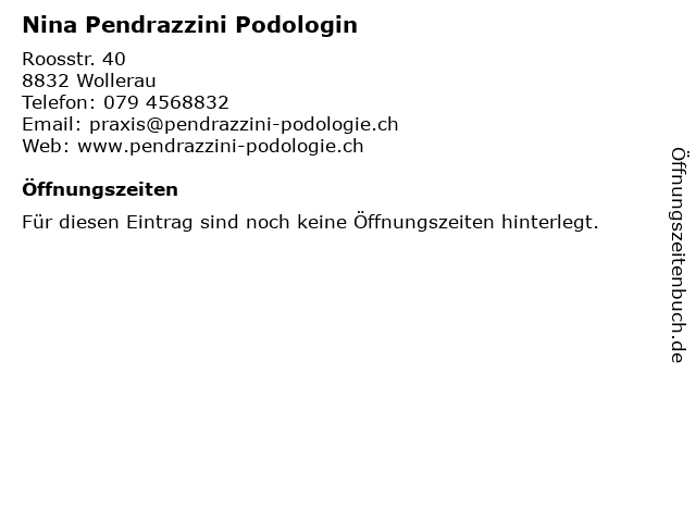 | Öffnungszeiten Nina Pendrazzini Podologin in Wollerau anzeigen | |