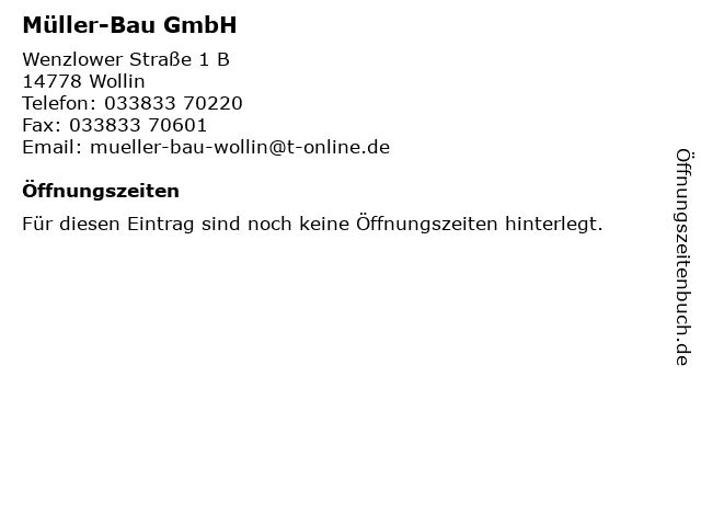 | Öffnungszeiten Müller-Bau GmbH in Wollin anzeigen | |