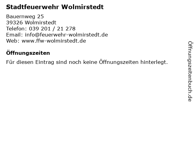 | Stadtfeuerwehr Wolmirstedt anrufen | |