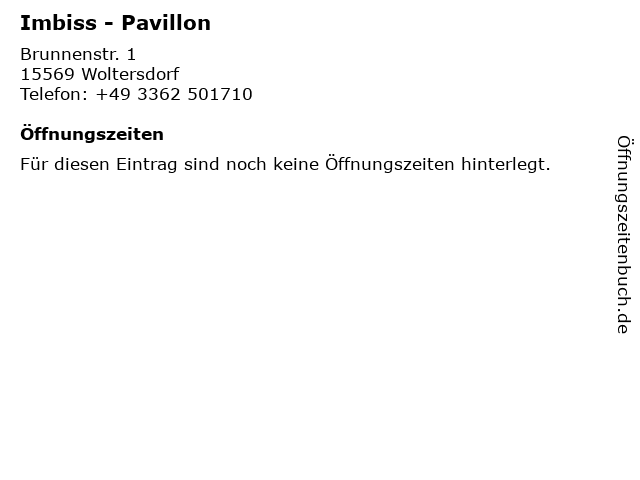 | Telefonnummer Imbiss - Pavillon in Woltersdorf (+49 3362 501710) anrufen | |