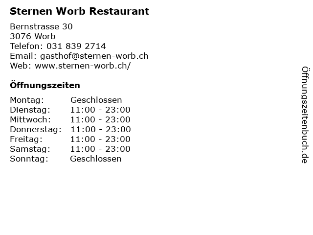 | Öffnungszeiten Sternen Worb Restaurant in Worb anzeigen | |