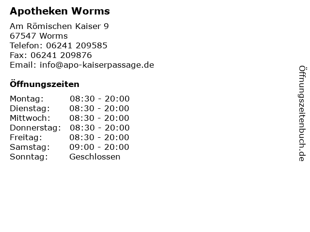| Öffnungszeiten Apotheken Worms in Worms anzeigen | |