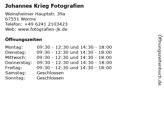 | Öffnungszeiten Johannes Krieg Fotografien in Worms anzeigen | |