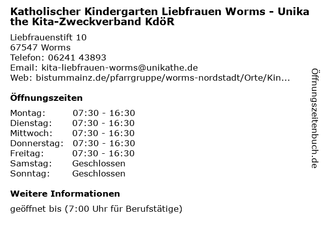 Branchen & Suchbegriffe zu Katholischer Kindergarten Liebfrauen Worms - Unikathe Kita-Zweckverband KdöR:dienstleistung, katholischer, kdör, kinderbetreuung, kindergarten, kita, landeskindergarten, liebfrauen, pfarrei, unikathe, zweckverband |
