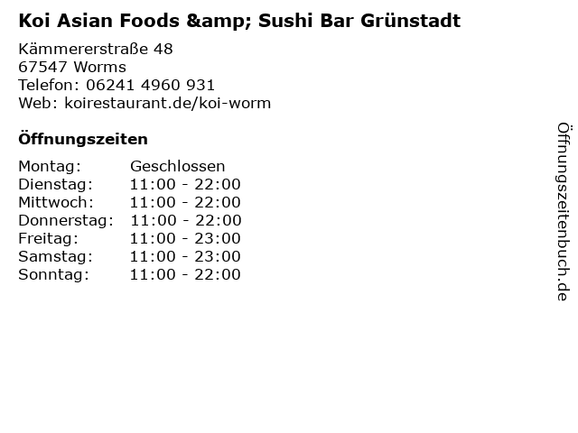Branchen & Suchbegriffe zu Koi Asian Foods & Sushi Bar Grünstadt:asian, bar, bistro, essen, foods, gastronomie, getränke, grill, hauptgerichte, koi, küche, restaurant, salat, sushi, vorspeisen |
