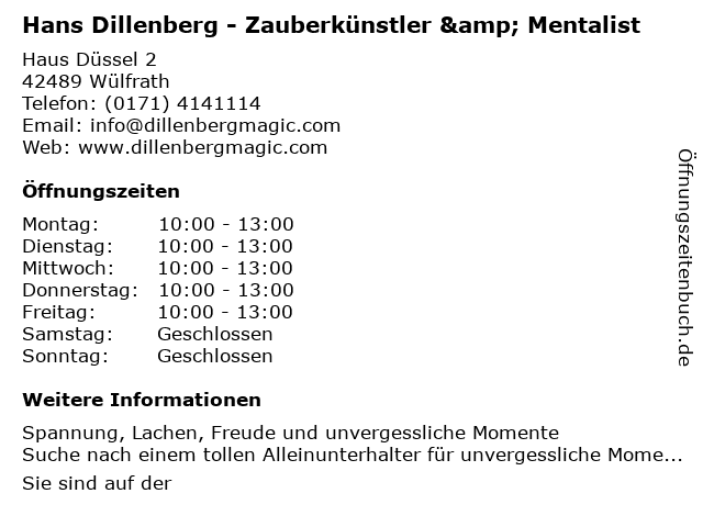 5 Musik und Magie Donatus Weinert - Zauberkünstler & Liedermacher (Entfernung: 13,50 km) Hans-Böckler-Str. 73, 42899 Remscheid 6 |