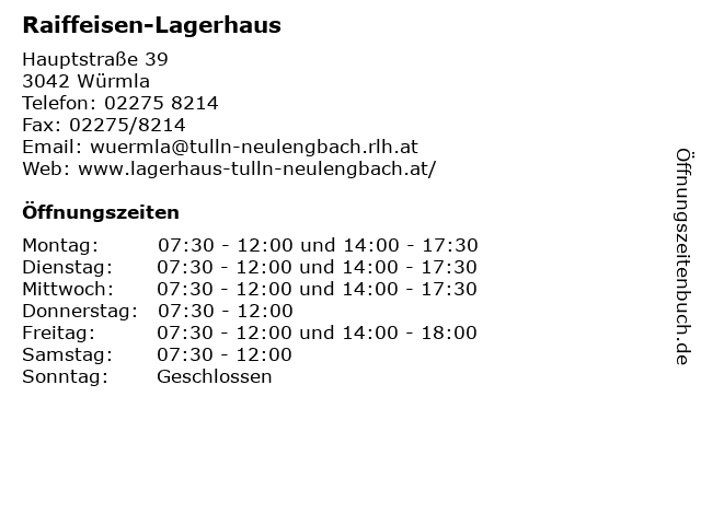| Öffnungszeiten Raiffeisen-Lagerhaus in Würmla anzeigen | |