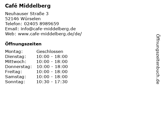 | Öffnungszeiten Café Middelberg in Würselen anzeigen | |