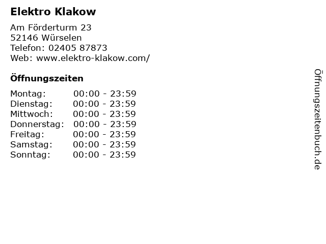 | Öffnungszeiten Elektro Klakow in Würselen anzeigen | |