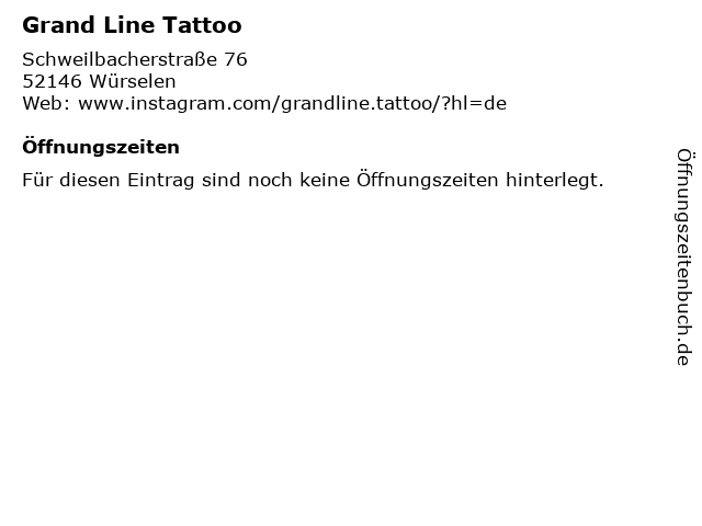 | Öffnungszeiten Grand Line Tattoo in Würselen anzeigen | |
