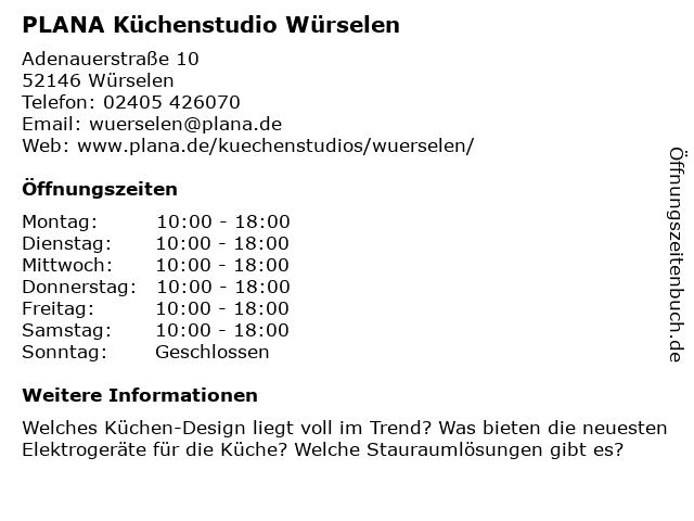 | Öffnungszeiten PLANA Küchenstudio Würselen in Würselen anzeigen | |