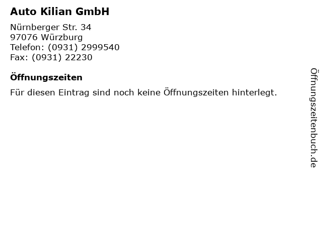 | Öffnungszeiten Auto Kilian GmbH in Würzburg anzeigen | |
