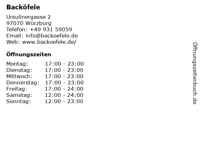 | Öffnungszeiten Backöfele in Würzburg anzeigen | |