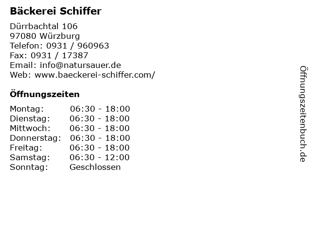 | Öffnungszeiten Bäckerei Schiffer in Würzburg anzeigen | |