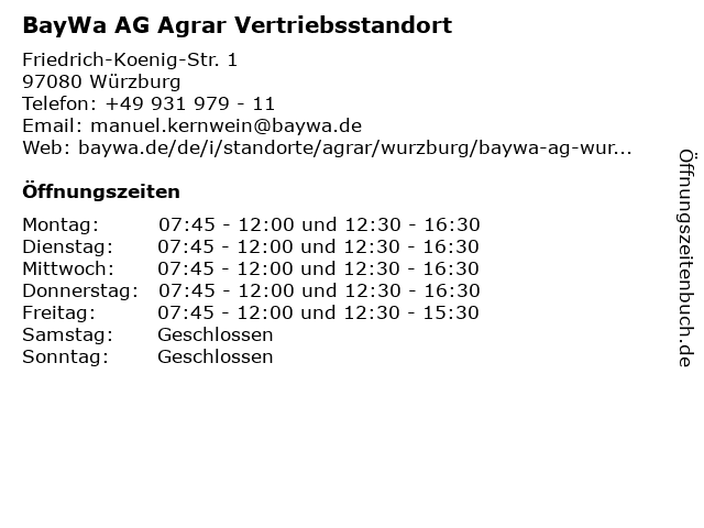 Öffnungszeiten BayWa AG Agrar Vertriebsstandort in Würzburg anzeigen